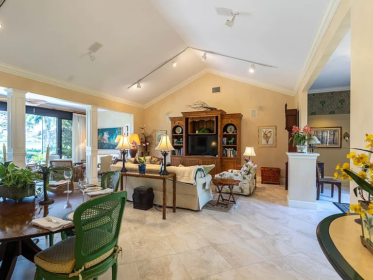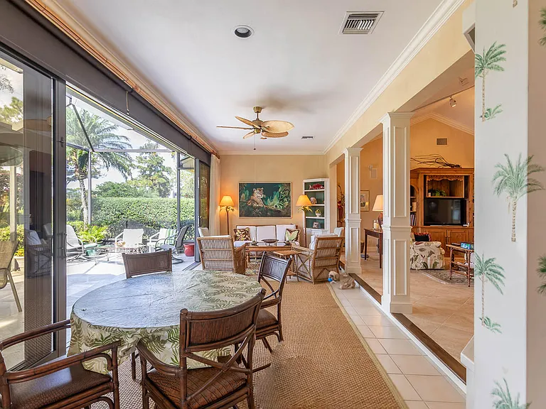 BRAND NEW A/C NOV 2025. BRAND NEW ROOF APRIL 2025. NEW H2O HEATER. New hardy plank. LARGE LOT. Great golf views of 2nd hole of Golden Marsh golf course. Lovely 3-bedroom, 2 bath home w/2-car garage plus golf cart garage. Large, enclosed room in the rear w/impact sliders that open completely. Large screened in patio.